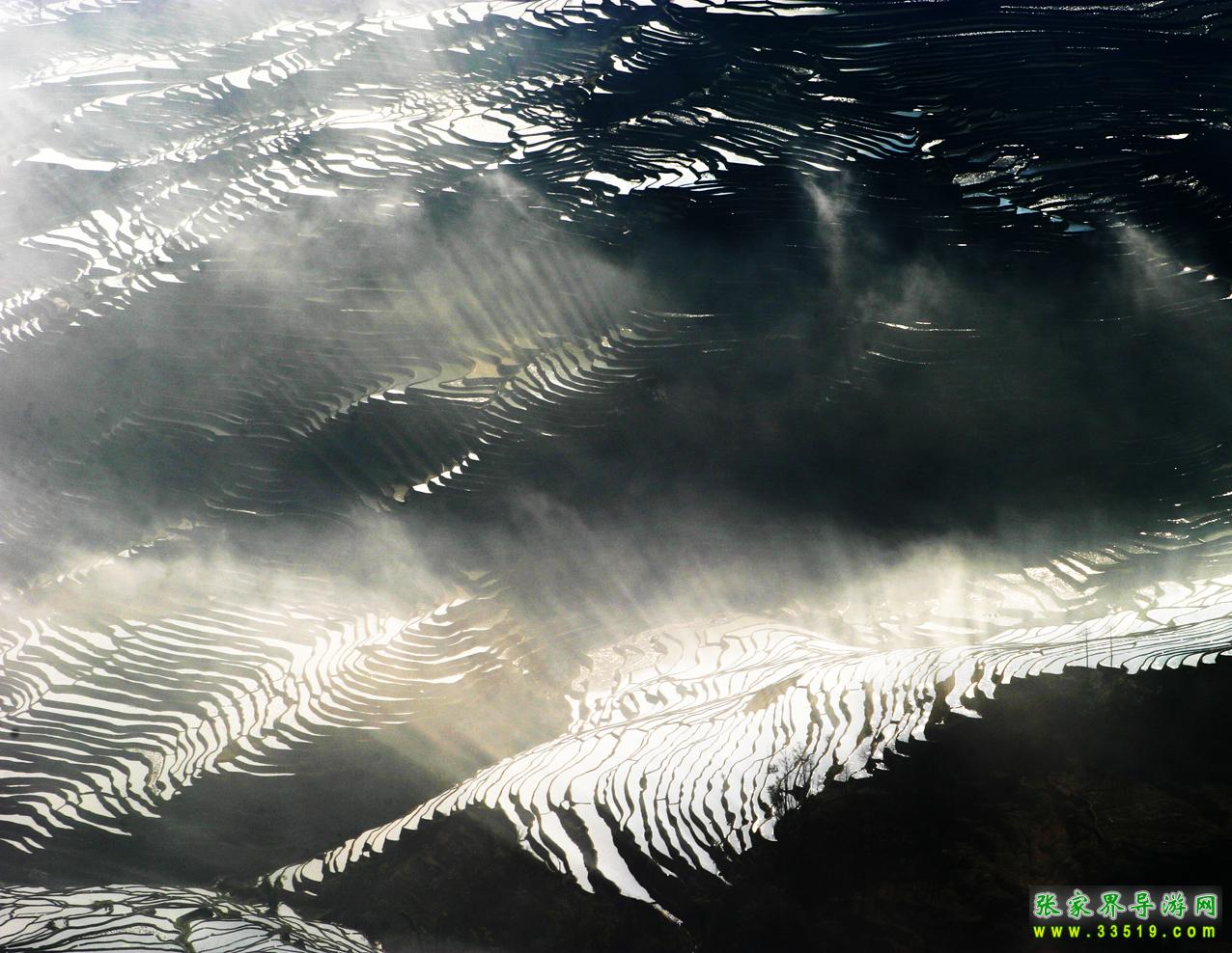冬季晨光下的元陽梯田