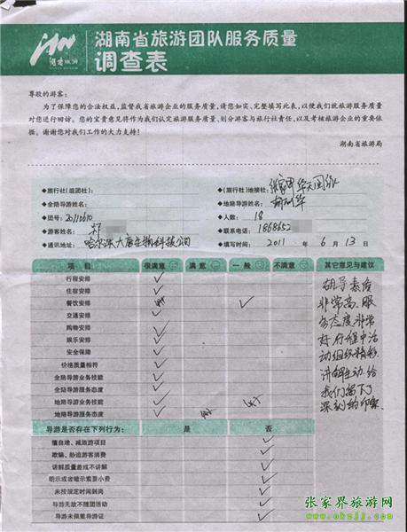 2011年6月13日鄭先生一行18人旅游質(zhì)量反饋:導游服務態(tài)度好,行程活動組織精彩